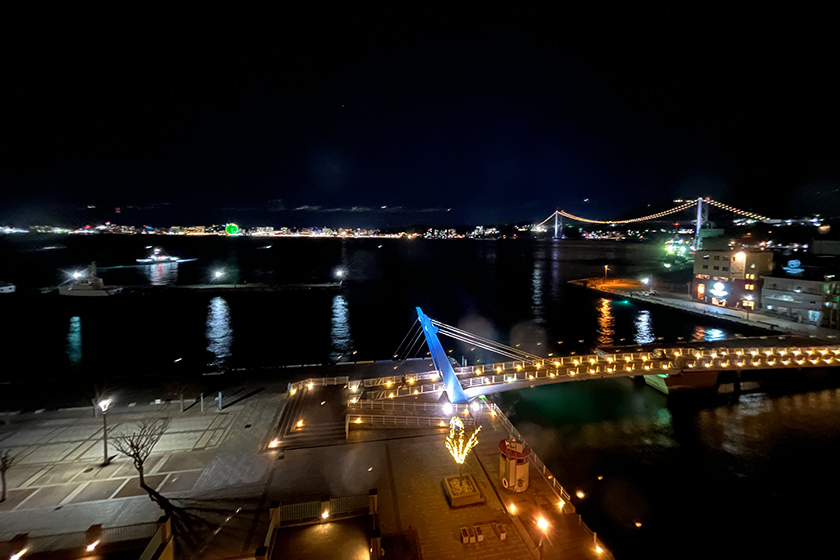 海峡を望む夜景は、特にカップルや記念日旅行の宿泊先としても好評。ロマンティックな空間として記憶に残るでござる。 - 港町らしい空気感と静けさ: